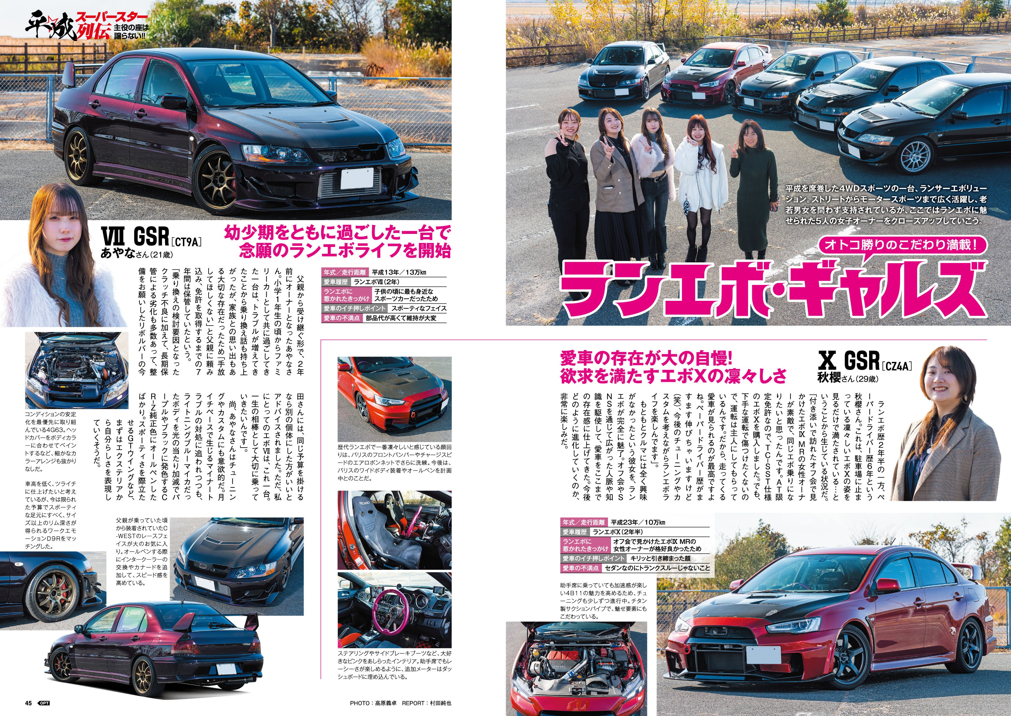 平成を席巻した4WDスポーツの一台、ランサーエボリューション。ストリートからモータースポーツまで広く活躍し、老若男女を問わず支持されているが、ここではランエボに魅せられた5人の女子オーナーをクローズアップしていこう。