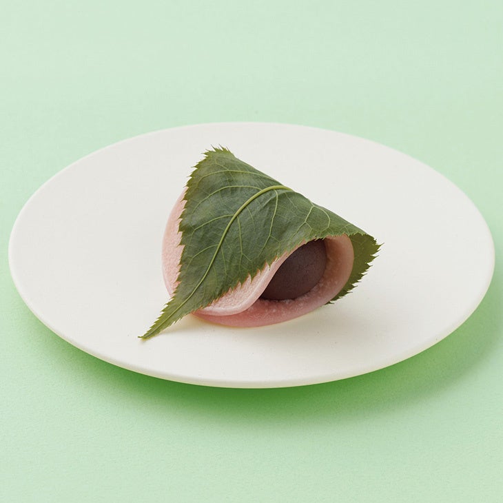 国産の桜葉、小豆を使用。皮のもちもちとした食感と桜葉の香りが特徴です。