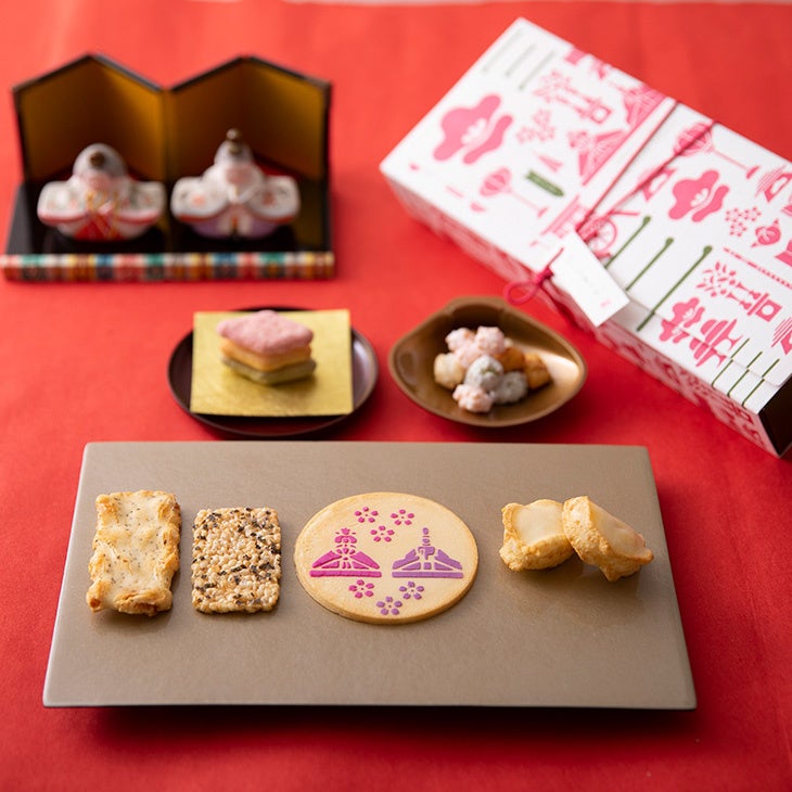 雛あられや、かきもちなどを楽しめる詰め合わせ。