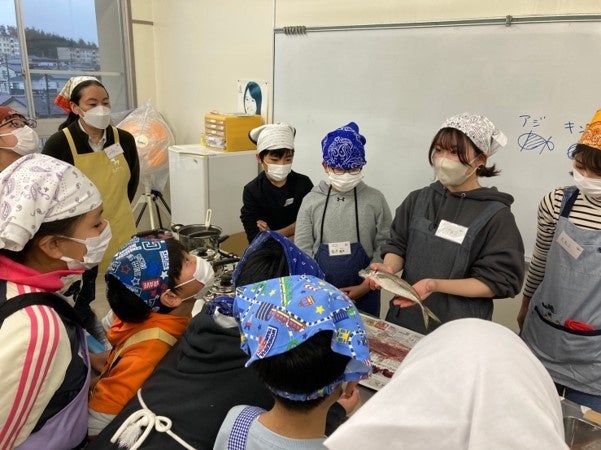 講師の大学生たちはスプーンで鱗を取ったり、ハサミや子ども用包丁で簡単にさばけるように事前にさばき方のマニュアルを作成をするなど、小学生でも安心して楽しくさばけるよう工夫しました。