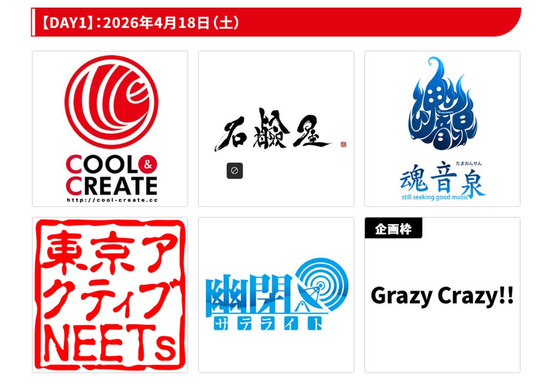 COOL&CREATE / 石鹸屋 / 魂音泉 / 東京アクティブNEETs / 幽閉サテライト