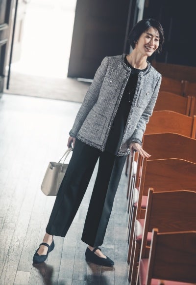 気品漂うツイードジャケットを羽織ればセットアップがワンランク上のスタイルに