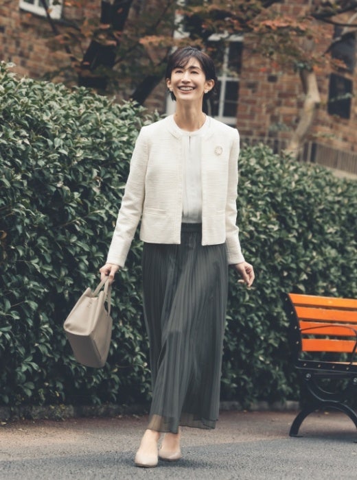 今回のスペシャルコンテンツでは、モデルの神山まりあさんが特別なシーンを好印象で華やかに演出するセレモニー服を素敵に着こなします。上質な素材を使用したツイードジレを取り入れたトレンド感のあるスタイルや、上品で知的な印象を与えるセットアップスタイルなど、合計9スタイルをご紹介いたします。