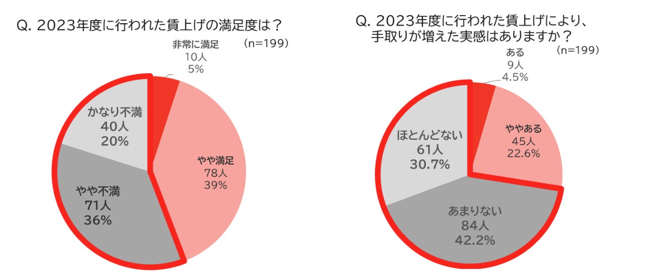 ・昨年度の賃上げに満足していない人は、約6割