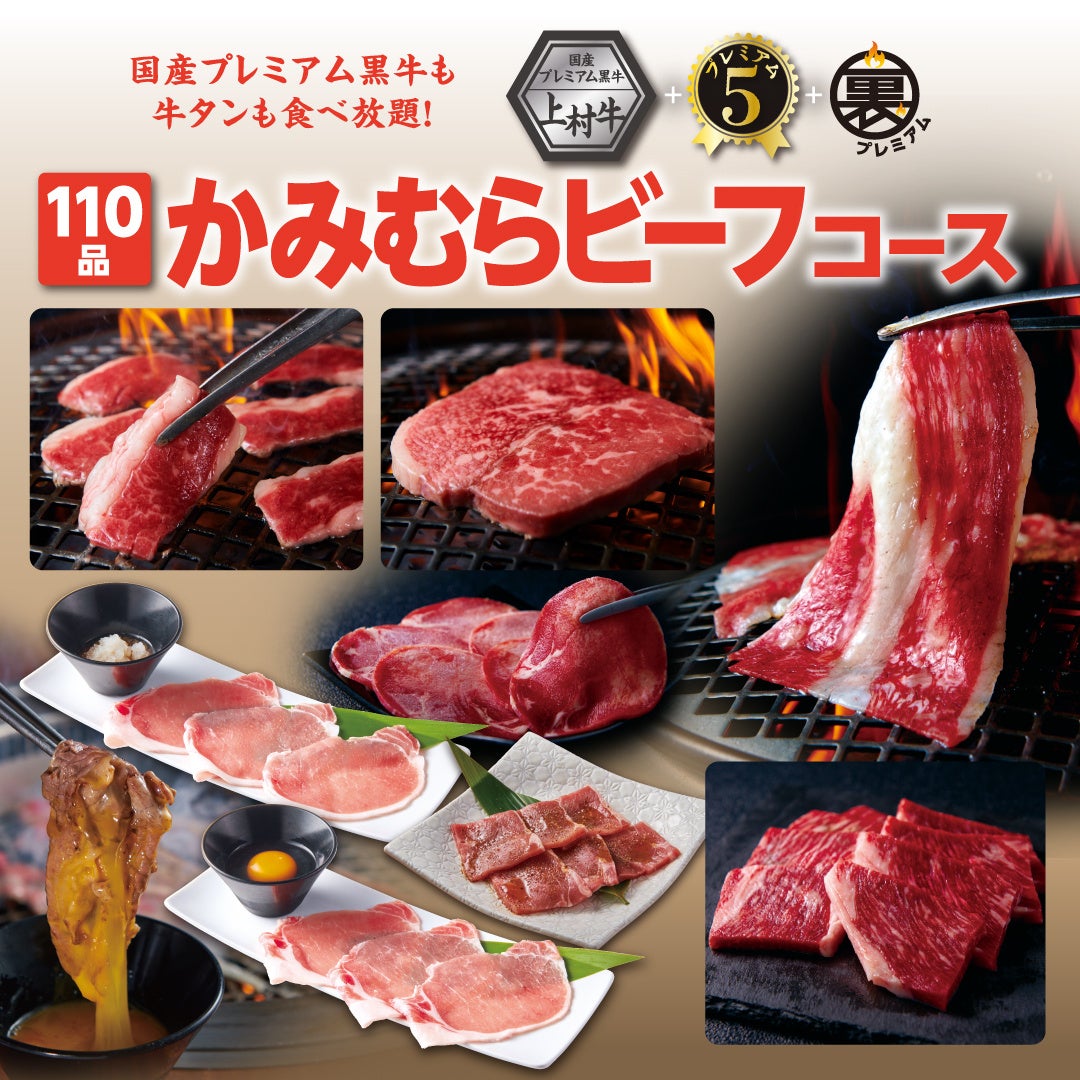 ◆国産プレミアム黒牛「上村牛」も食べ放題!110品『かみむらビーフコース』 KAMIMURA BAR付き