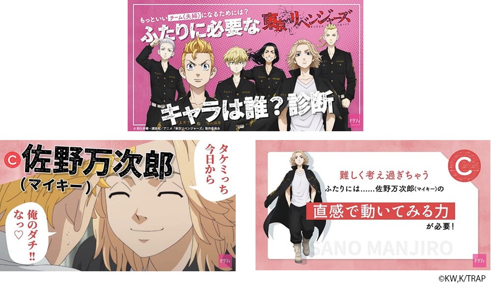 『東京リベンジャーズ』スペシャル婚姻届の登場を記念して、『ゼクシィ』×『東京リベンジャーズ』がコラボレーションした「ふたりに必要なキャラは誰?診断」をYouTubeで公開いたします。これから夫婦になるふたりのチーム力(夫婦力)をさらに上げるために取り入れたい、『東京リベンジャーズ』のキャラクター要素を診断できるコンテンツになっています。ぜひパートナーと診断してみてください。