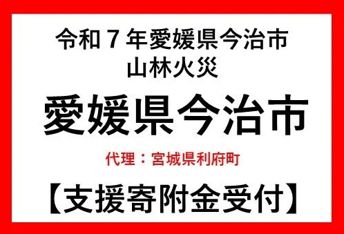 トラストバンク、ふるさとチョイス災害支援で、令和7年林野火災により被害を受けた愛媛県今治市へのふるさと納税、宮城県利府町と栃木県佐野市が代理寄付を受付開始