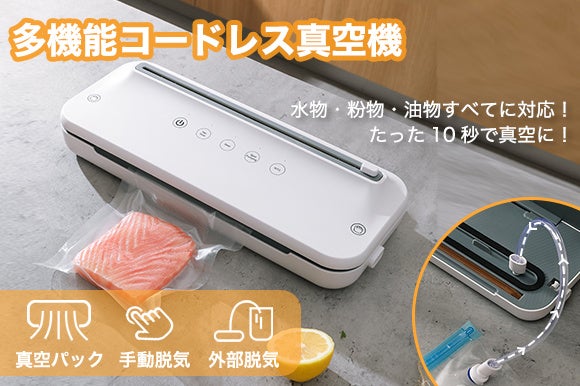 たった10秒で真空に!汁気がある食材や、粉ものにも対応! 脱気、密閉、カッターの全てがそろった「Mosocoコードレス真空パック機」をガジェットストア「MODERN g」で販売開始