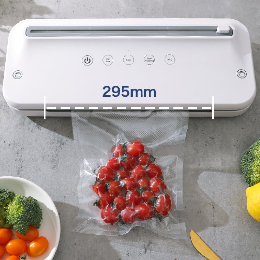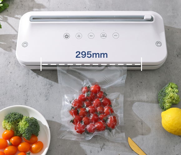 - 295mmのシーリング幅。複数のパックを同時に真空可能