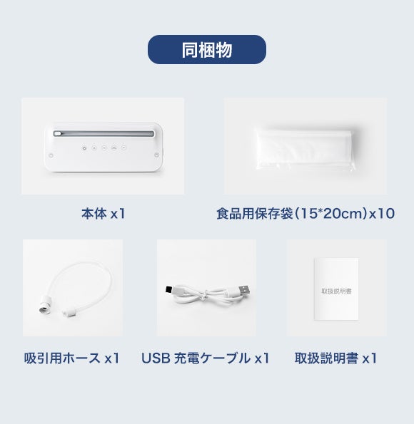 【Mosocoコードレス真空パック機】は65kPaの強力な吸引力で約10秒で完璧な真空状態を作り上げます。