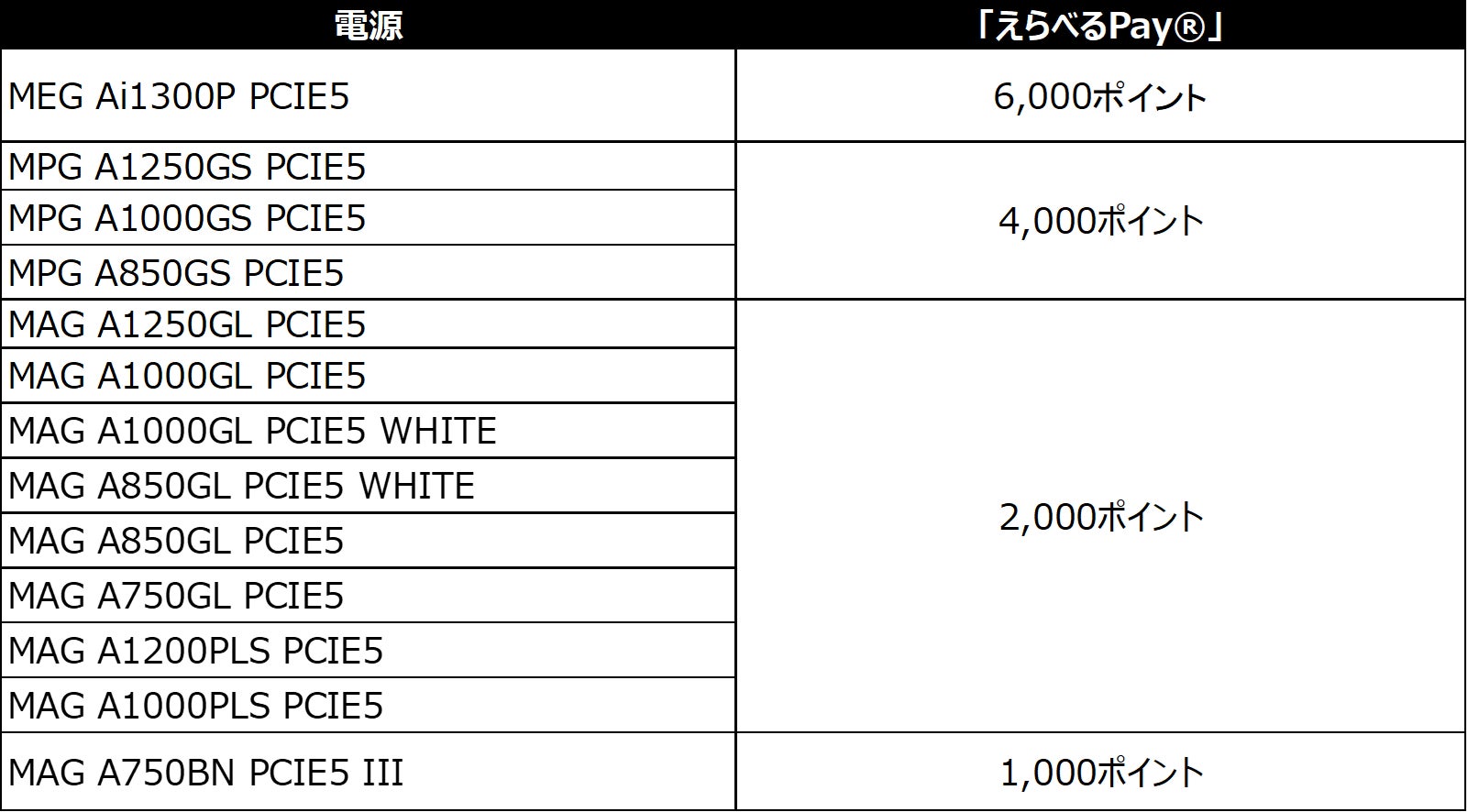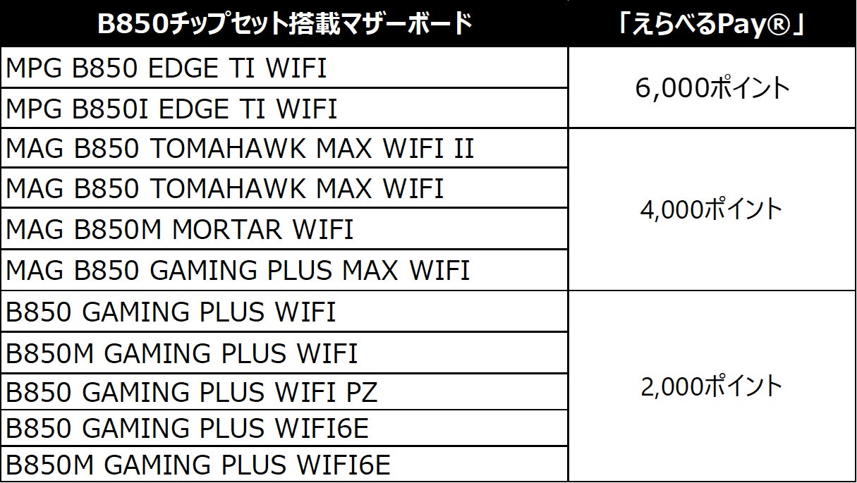 MSI、「GWビルド応援キャンペーン」を開催対象製品購入&応募で、1製品につき「えらべるPay®」 最大10,000ポイントをプレゼント!
