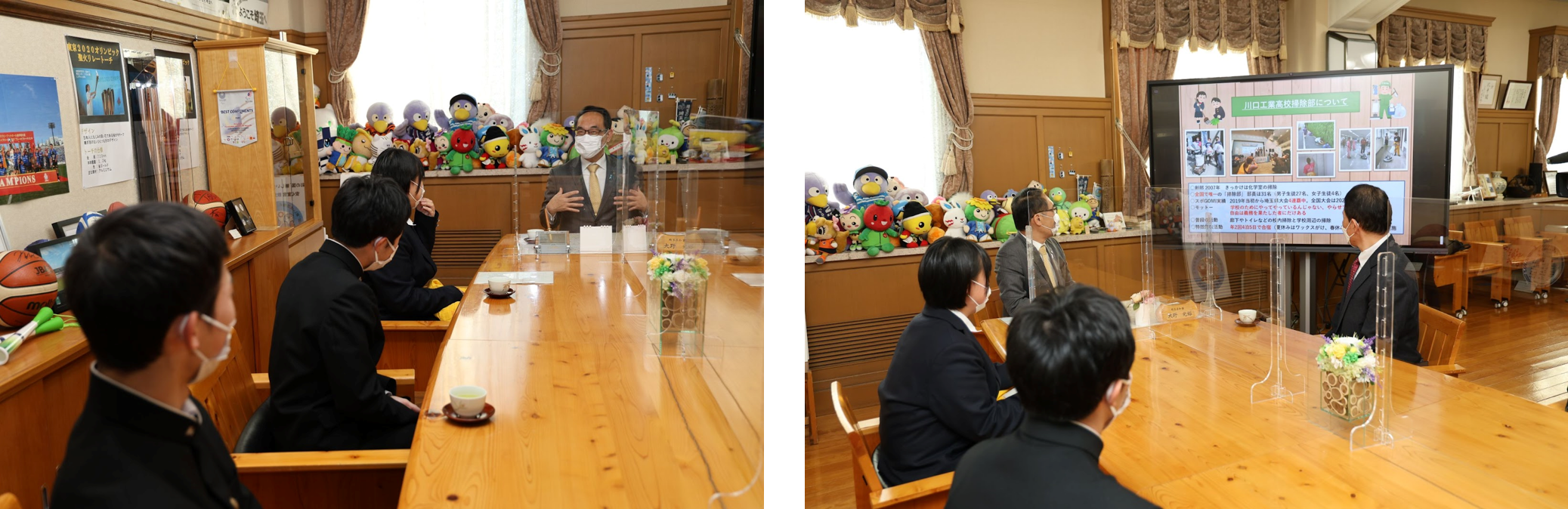2022年8月5日に行われた『スポGOMI甲子園2022・埼玉県大会』で優勝した川口工業高校(埼玉県川口市、校長:染谷明生)在校生3人組の「川口工業高校掃除部チームC」が、大会での成果を報告するため埼玉県大野元裕知事を表敬訪問しました。