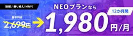 NEOプランに申し込むと、利用開始月を除く12か月間、月額基本料金1,980円で利用できます。