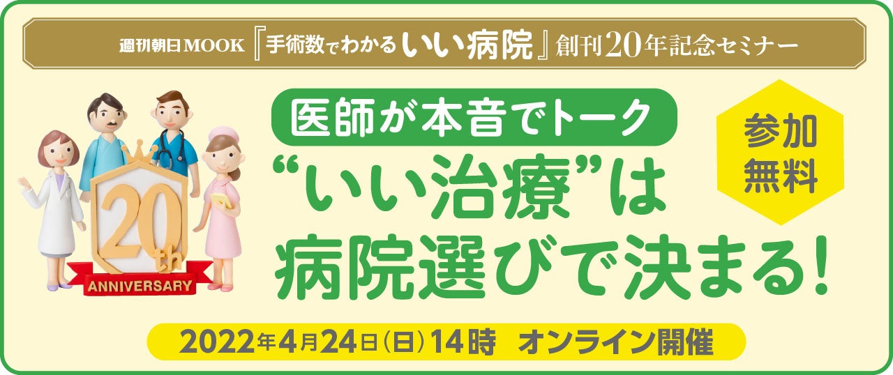 <4/24開催無料Webセミナー>医師が本音でトーク“いい治療”は病院選びで決まる!/週刊朝日ムック『手術数でわかる いい病院』創刊20年記念