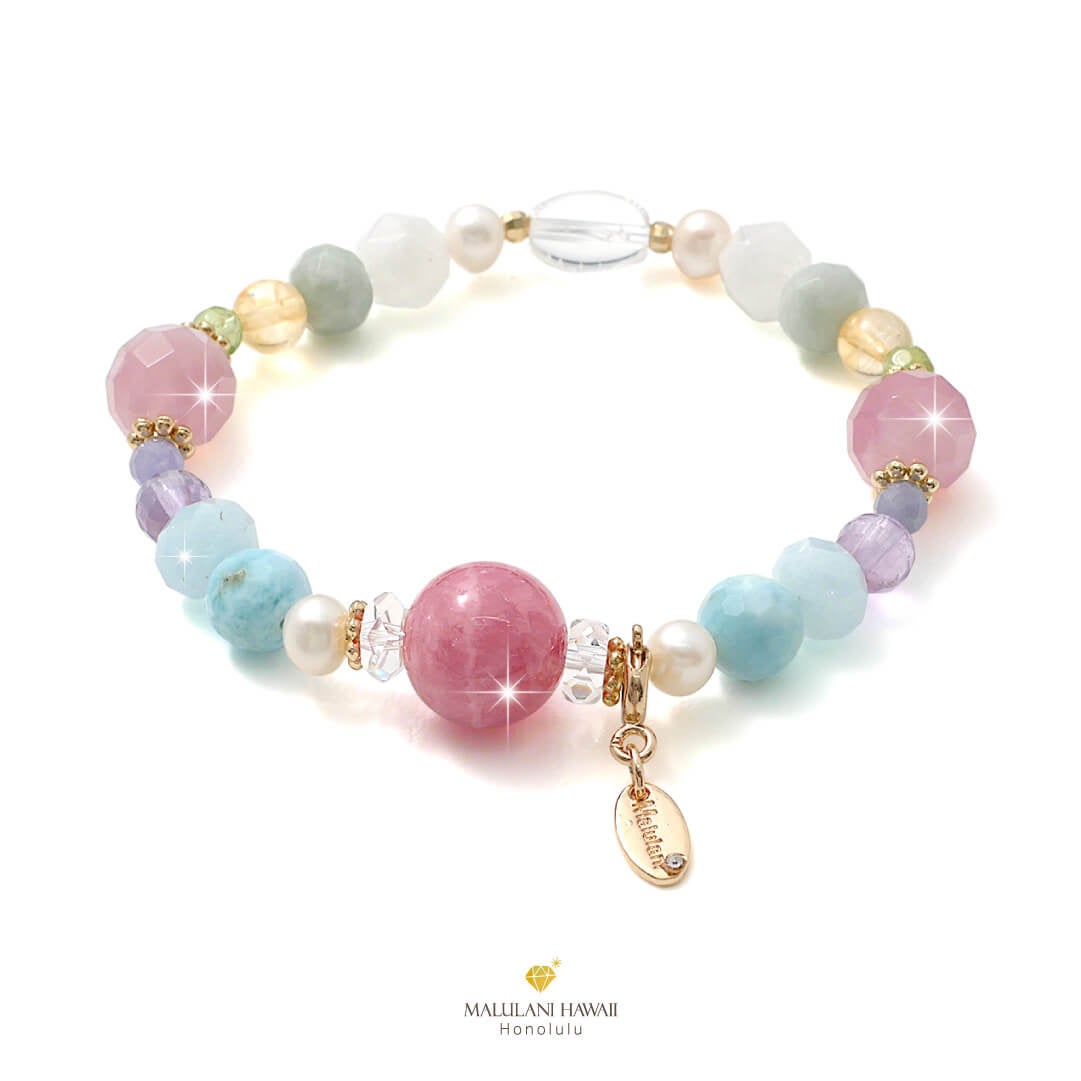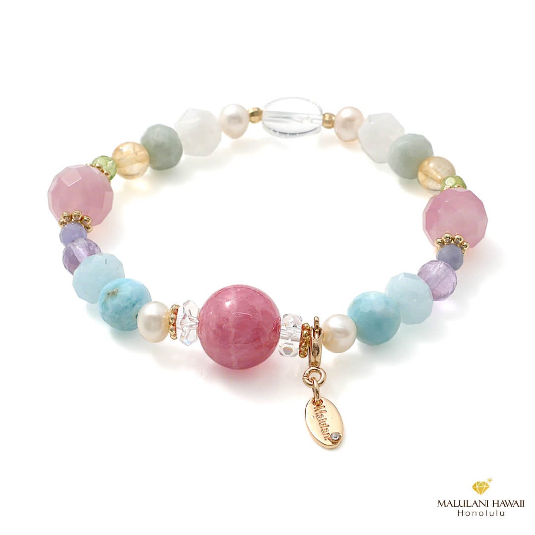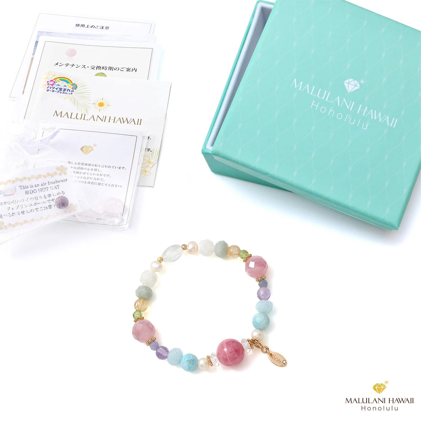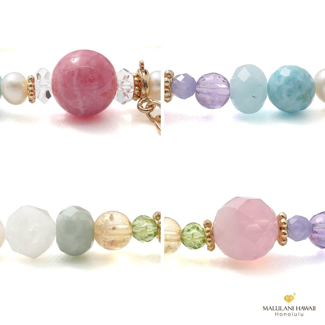 「見る人に幸運を招く」と伝えられるハワイの虹を、天然石で表現したブレスレットには、ハッピーオーラが満載。