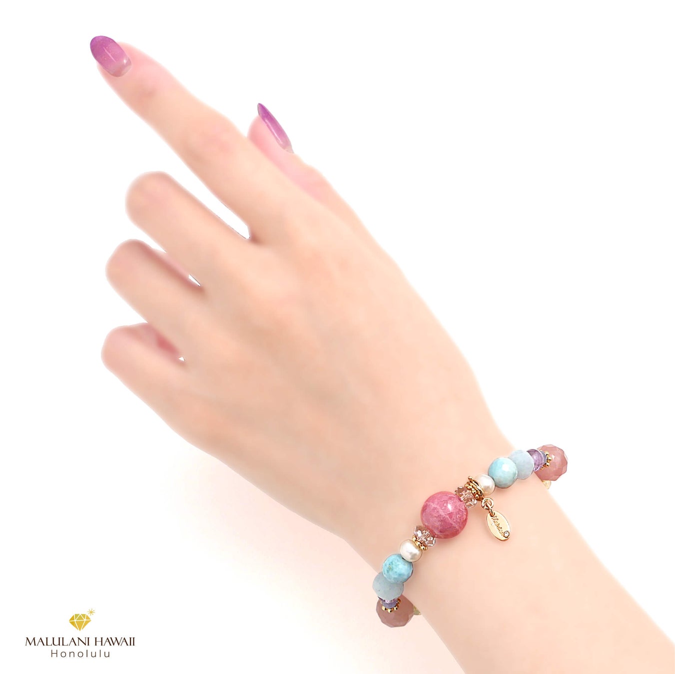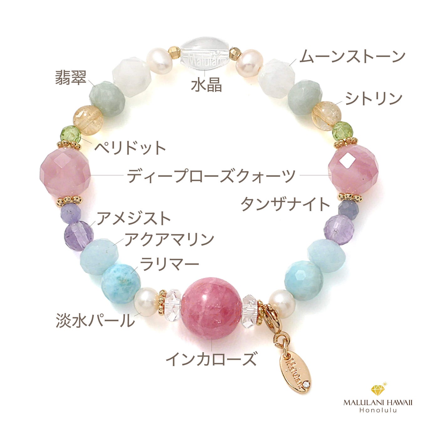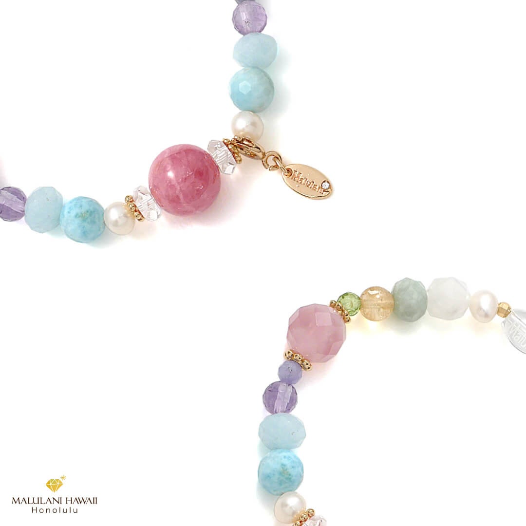 「見る人に幸運を招く」と伝えられるハワイの虹を、天然石で表現したブレスレットには、ハッピーオーラが満載。