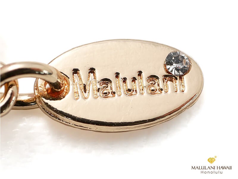 オリジナルチャームと水晶には、ハワイ語で「神に護られた」という意味を持つ「Malulani」と刻印。ブランドロゴでもあるこの言葉は、持つ人に「神のご加護がありますように」との祈りをのせています。