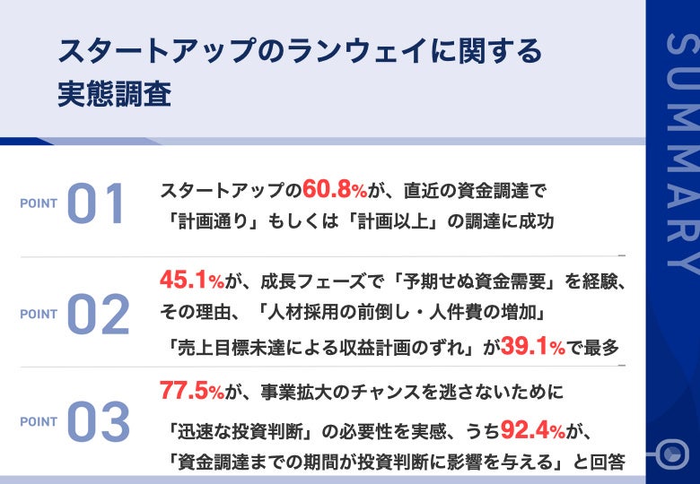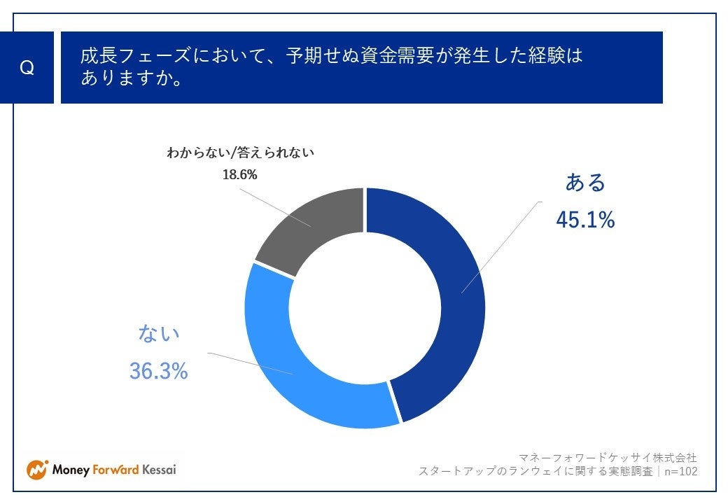 スタートアップの45.1%が、成長フェーズにおいて「予期せぬ資金需要」を経験