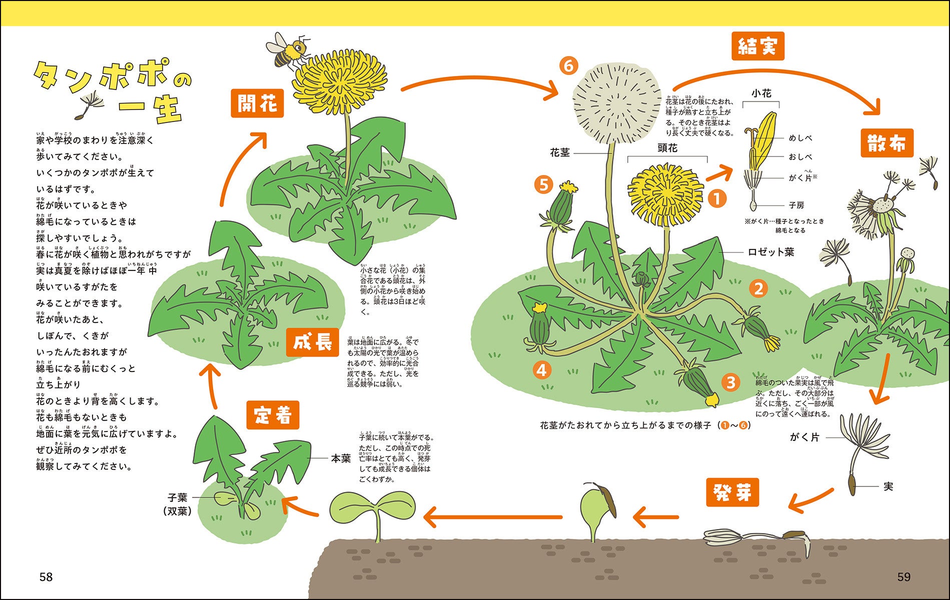 タンポポには特に雑草らしい巧みな作戦が詰まっているため、ライフサイクルからからだのつくりまで丁寧に解説します。