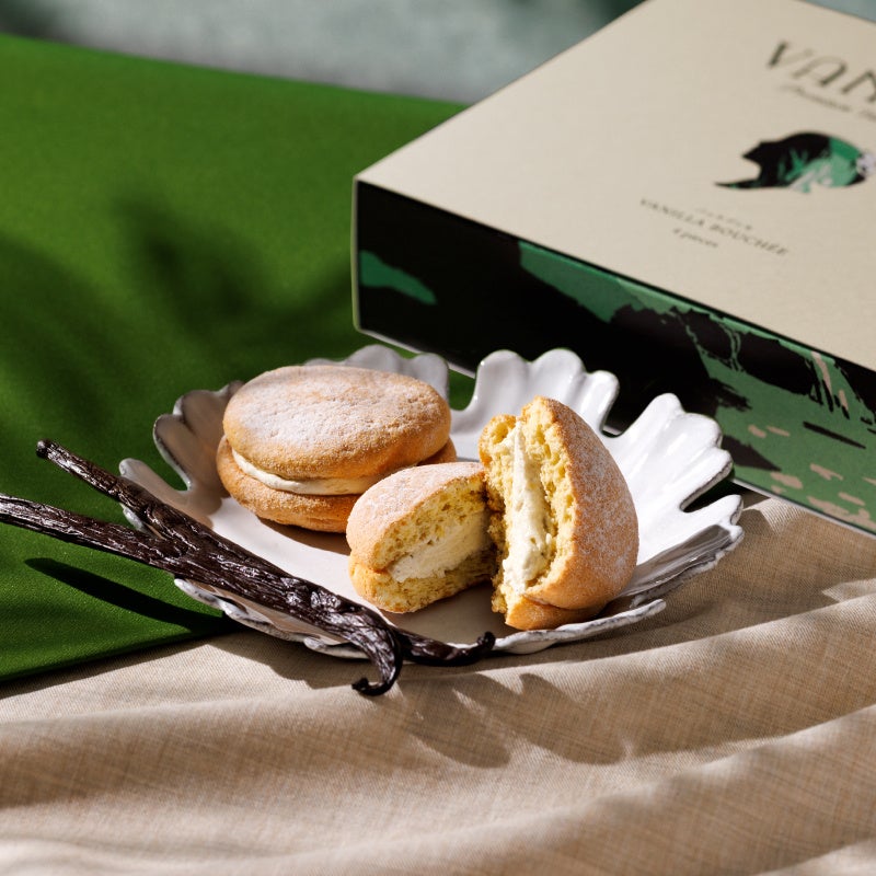 グラスフェッドバターとバニラで仕立てたコク深いバニラクリームをサンドしたブッセ。