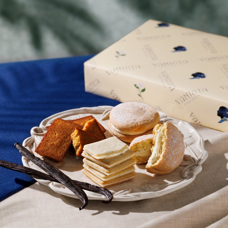 タヒチ産バニラの華やかな香りで仕立てた、スイーツを詰め合わせたギフトボックス。
