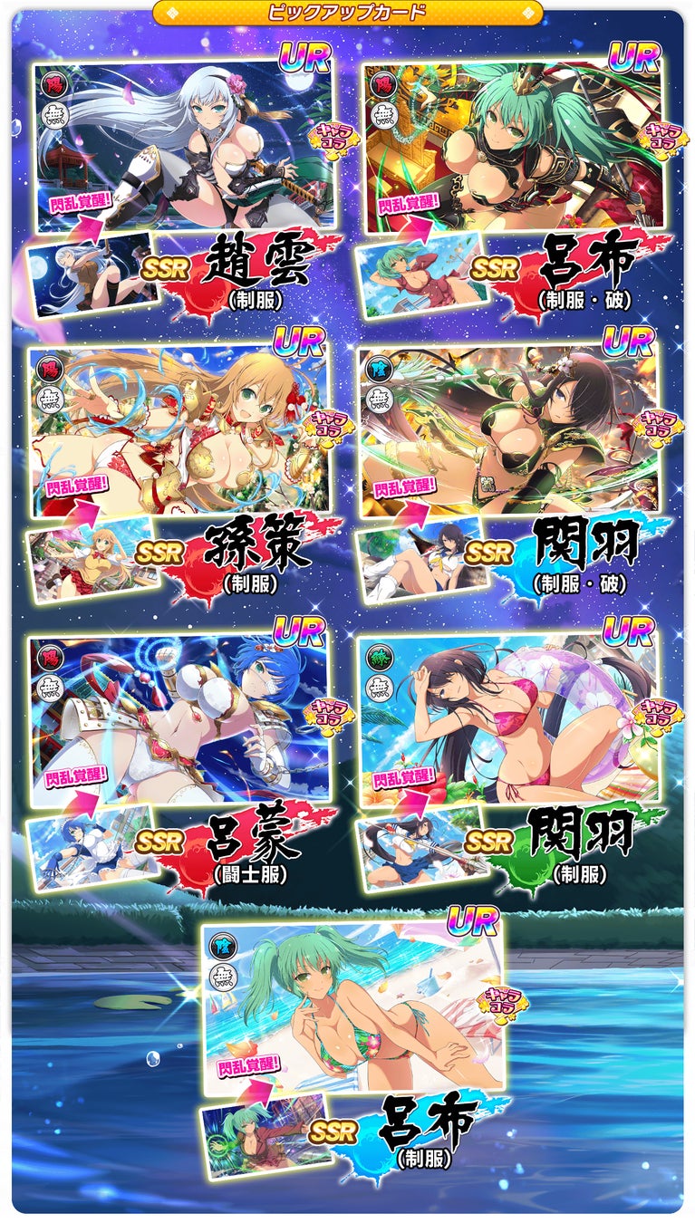 STEP3では「UR 関羽(水着)」「UR 呂布(水着)」に閃乱覚醒できるカードのいずれか1枚確定!