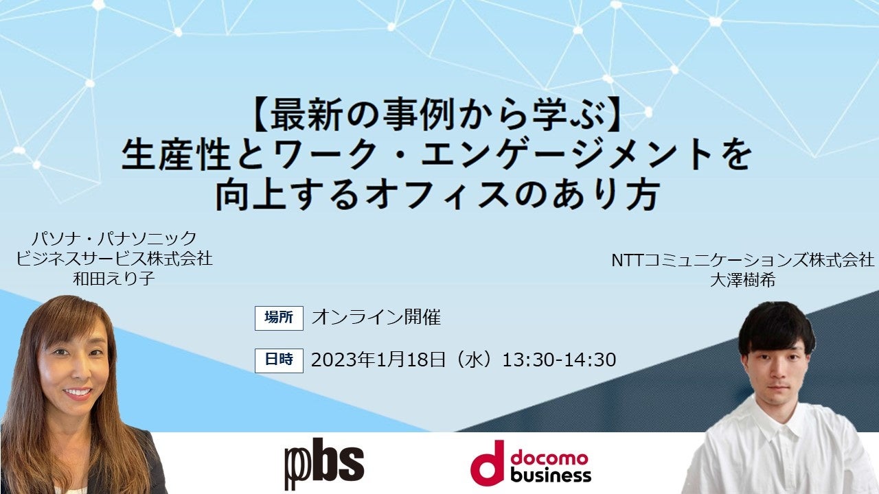PBS、NTT Com 共催ウェビナー 1月18日開催『最新の事例から学ぶ、生産性とワーク・エンゲージメントを向上するオフィスのあり方』