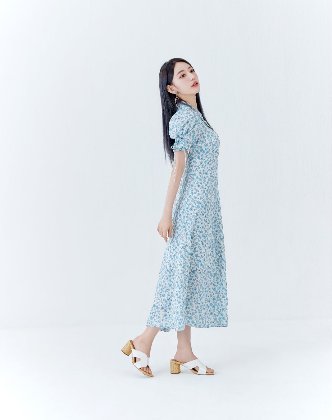 ほどよいパフスリーブと裾にかけて広がるフレアシルエットで春らしい着こなしが楽しめます。