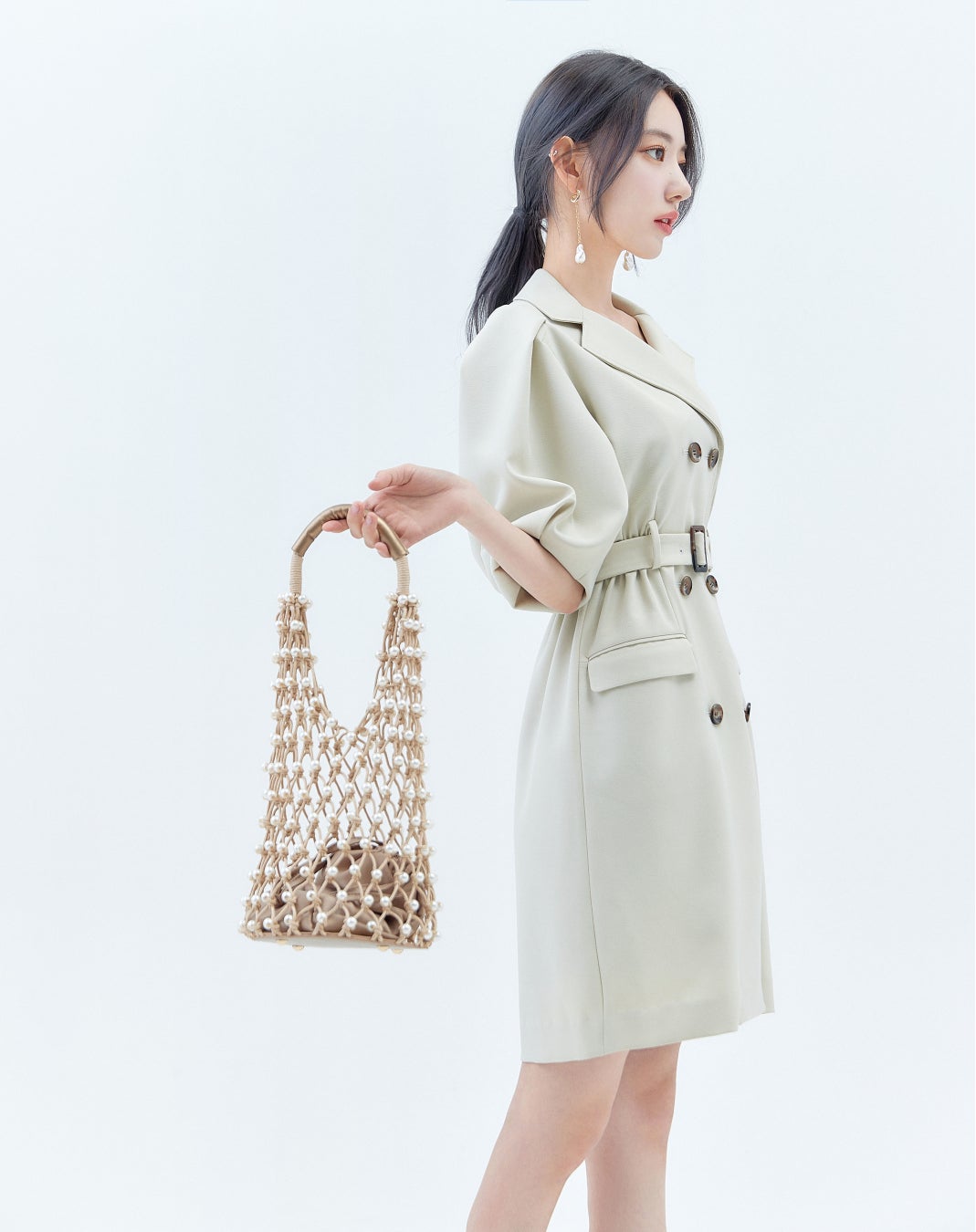 袖にあしらわれたテープレースや切り替えなど抜かりないディテールで、襟を外しても着映えするデザイン。