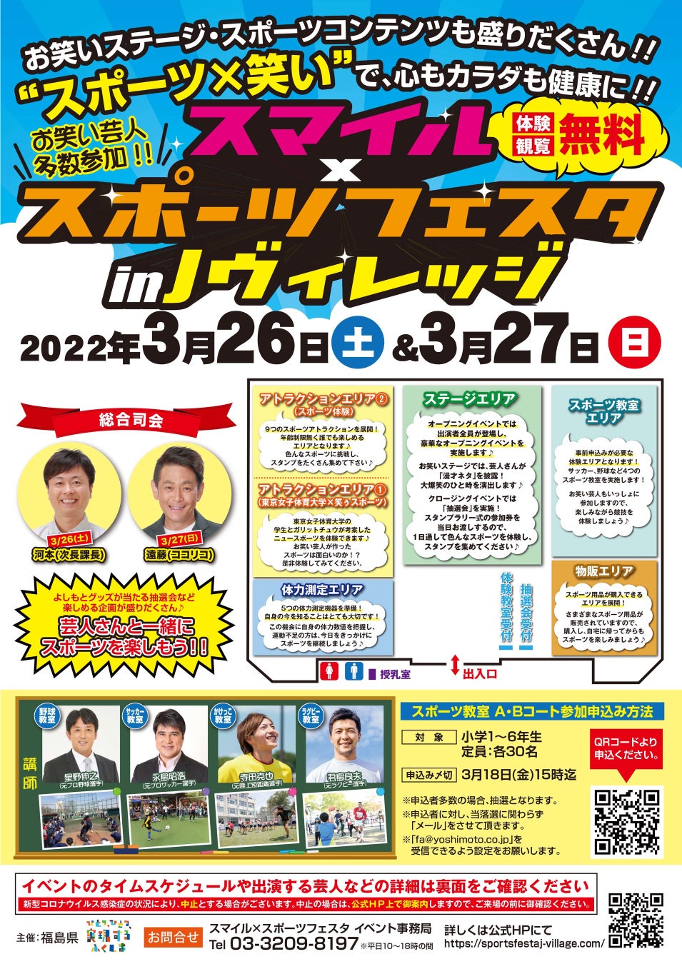 スマイル×スポーツフェスタ in Jヴィレッジ 【ご案内】3月26日(土)&27日(日)福島県 Jヴィレッジでイベント開催