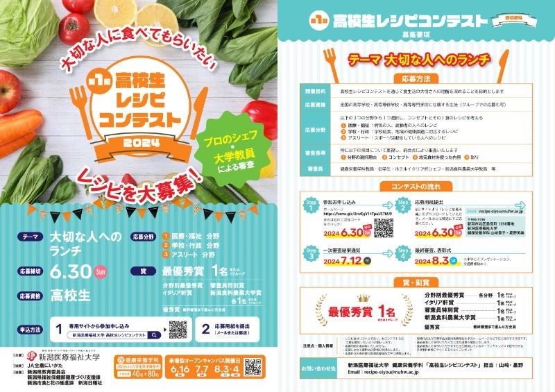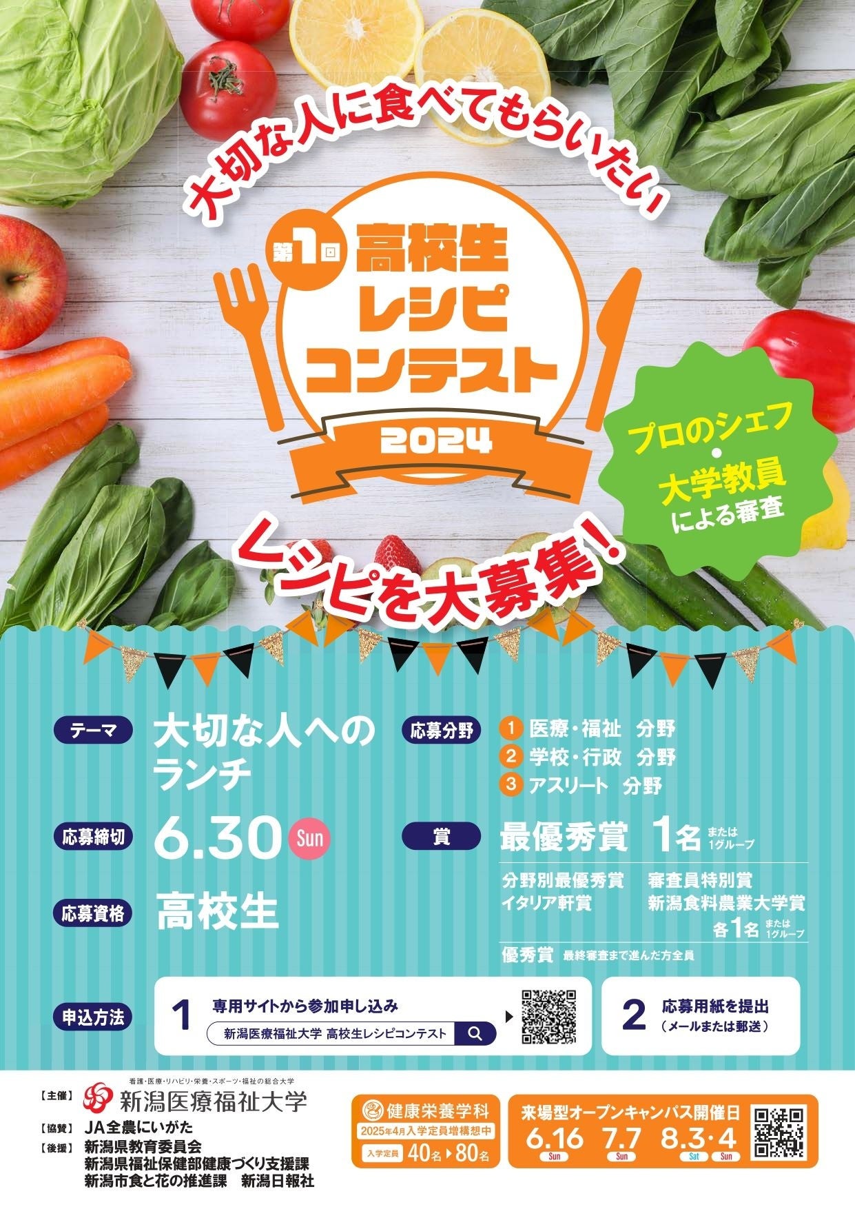 【新潟医療福祉大学】健康栄養学科:第1回高校生レシピコンテスト開催中!~「大切な人へのランチ」~