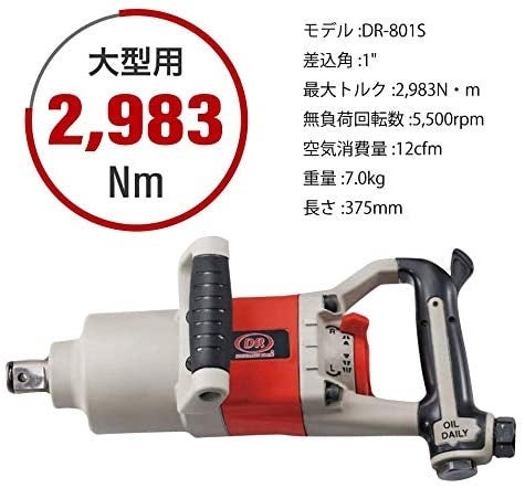 自動車整備工具からカーケアまで、必要なものがすぐに手に入るFINE PIECE デリバリー(運営:ファインピース株式会社、本社:東京都新宿区)は、DR1"大型用メガインパクト DR-801SDR 1"大型用メガインパクト DR-801Sの取り扱いを開始。