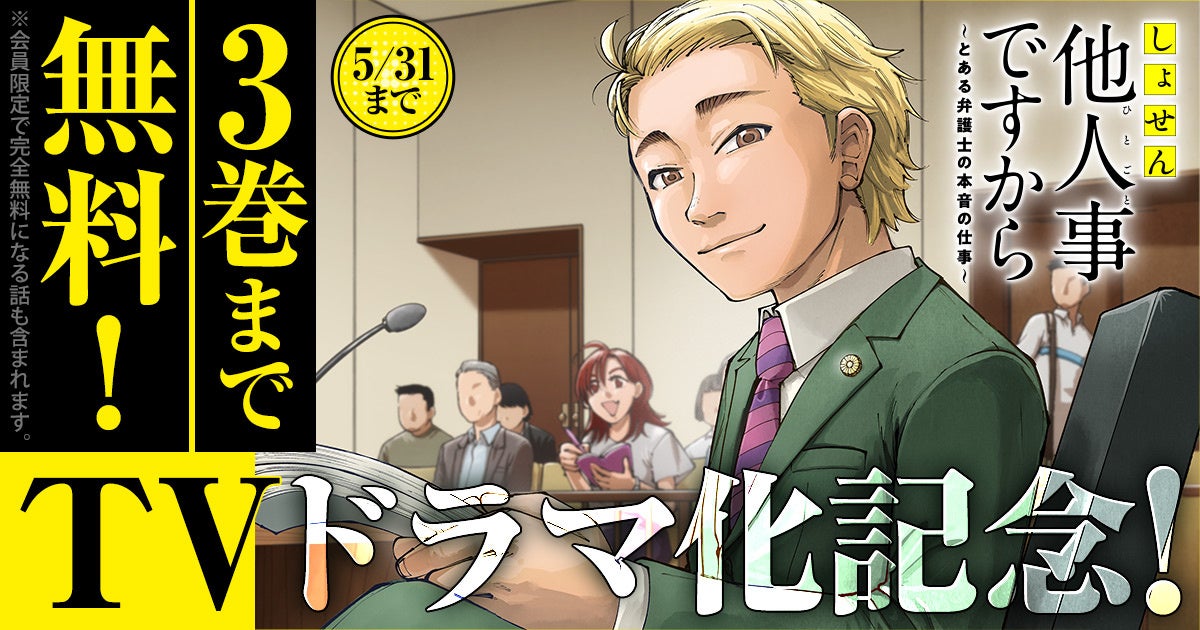 電子版コミックスでは「しょせん他人事ですから」TVドラマ化を記念しまして、1巻無料試し読み&1巻50%OFF(一部書店を除く)。