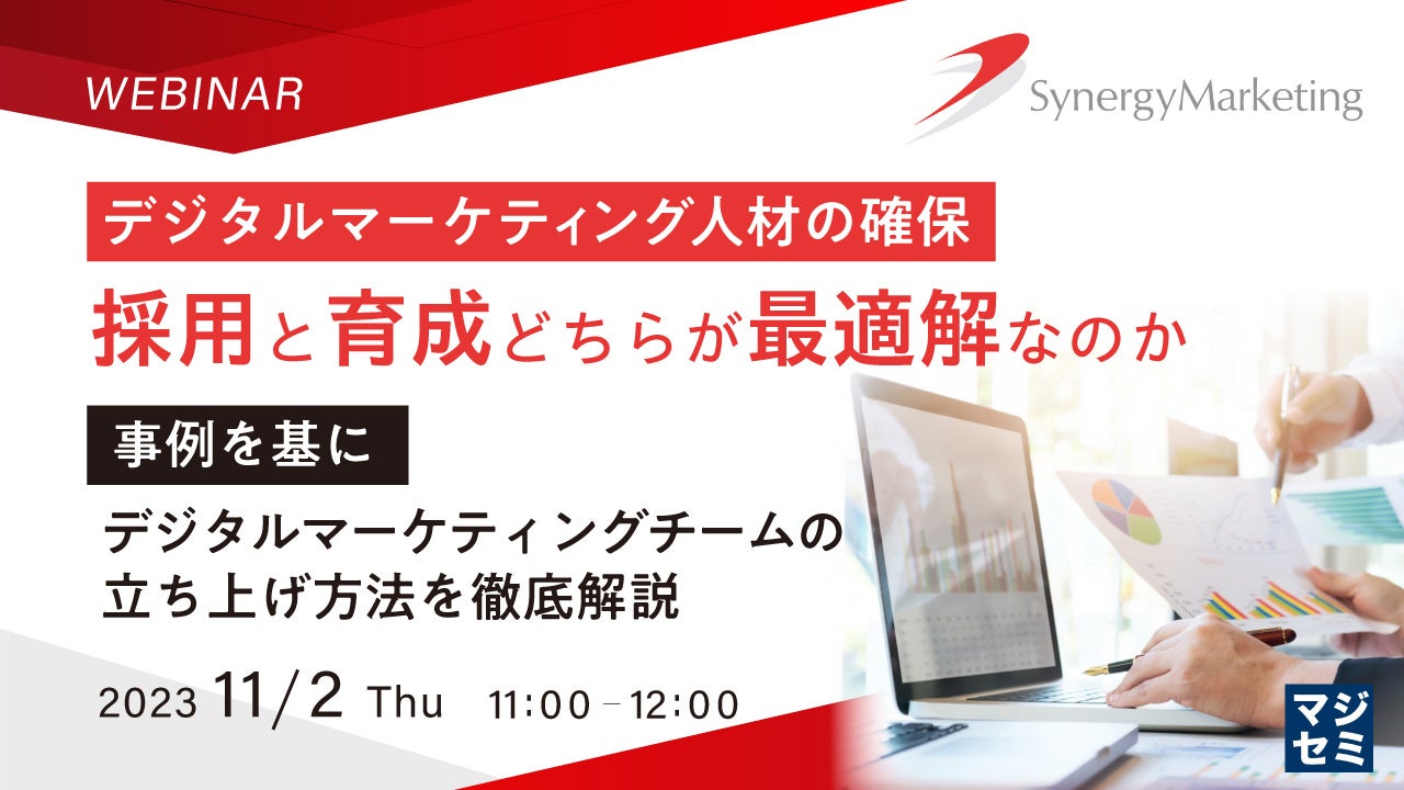 本ウェビナーでは、「どのようにして即戦力のデジタルマーケティング人材を確保していけばよいのか?」を採用と教育という観点から解説いたします。