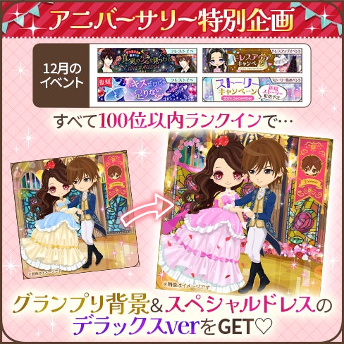 大人気のグランプリイベントを開催いたします。同時開催のストーリーイベントなど、アプリを遊ぶと好きなダンナ様に投票できるポイントが手に入ります。