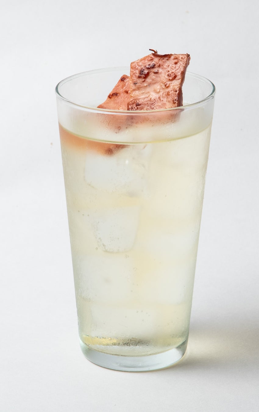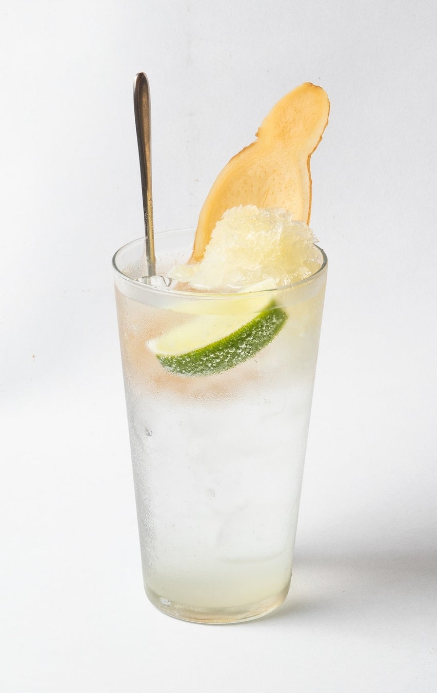 国産生姜を大胆にスライスし漬け込んだ自家製ウォッカを使用する事で見た目以上に生姜を感じられるカクテル。