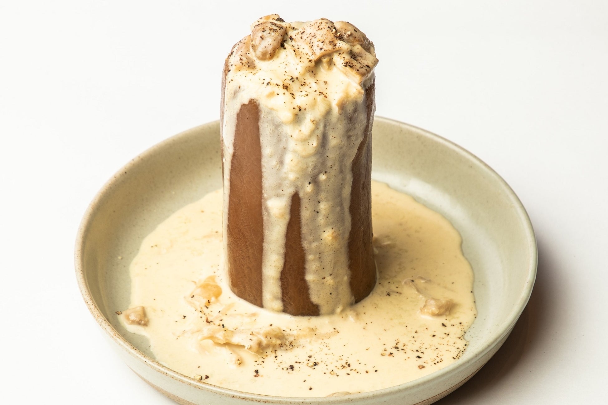 かつお出汁とブイヨンで煮込んだ冬の味覚「大根」に、ポルチーニの濃厚チーズソースを合わせたオリジナル洋風おでん。