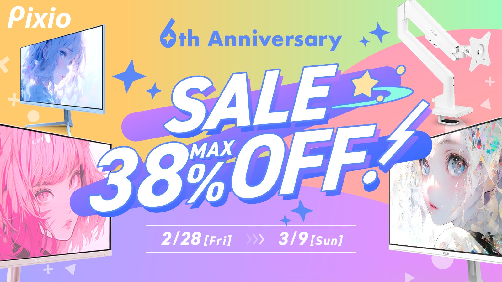 Pixio 公式ストアで販売しているモニターやアームなどの対象商品が10%〜38%オフになるお得なセールを展開します。