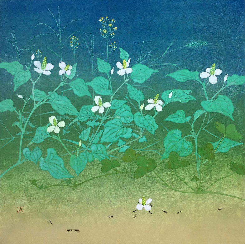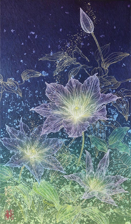 山登りで出会った自然の植物や鳥を色鮮やかな「多色摺木版画」で表現する久木朋子氏。里山に暮らし、日常の鳥のさえずりや木々のざわめき、土や風の香りを感じさせる作品を展観いたします。「和紙」と「ばれん」で表現された手摺りの温かな色彩をこの機会にお楽しみください。