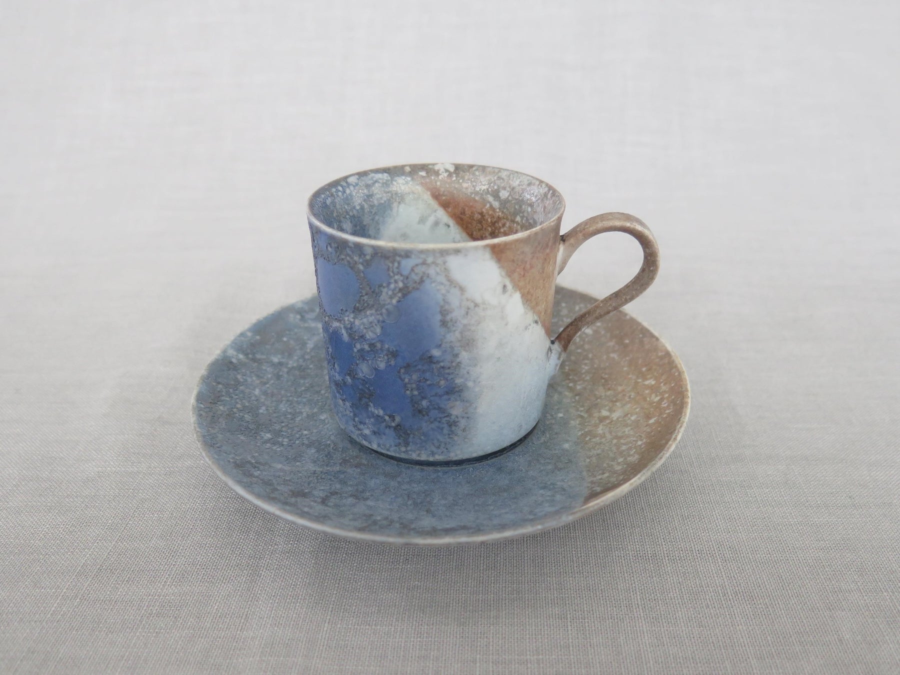 ◆ お礼の品名: 【笠間焼】燻し銀彩焼コーヒーカップ&ソーサ―/(茨城県笠間市)