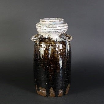 約430年に渡り唐津を代表する窯元。桃山時代の古唐津を復興させた人間国宝 中里無庵を祖父に持つ十四代中里太郎右衛門。唐津焼の中でも典型的な朝鮮唐津の耳付き花入で、叩きの技法で作られたもの。作りも焼きもとても繊細かつ上品に仕上がった一点ものです。