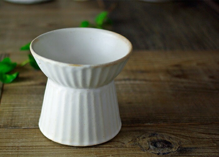伝統工芸品である益子焼で作られた、猫・小型犬用のフードボールです。首や食道に負担のかからない高台タイプを採用。インテリアにも馴染むデザインです。