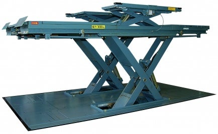 能力3.0トン アライメント計測対応のXリンク式ドライブオンリフト。左右1mm以内、前後・対角2mm以内の高精度なランウェイレベルを確保しアライメント計測作業をサポートします。