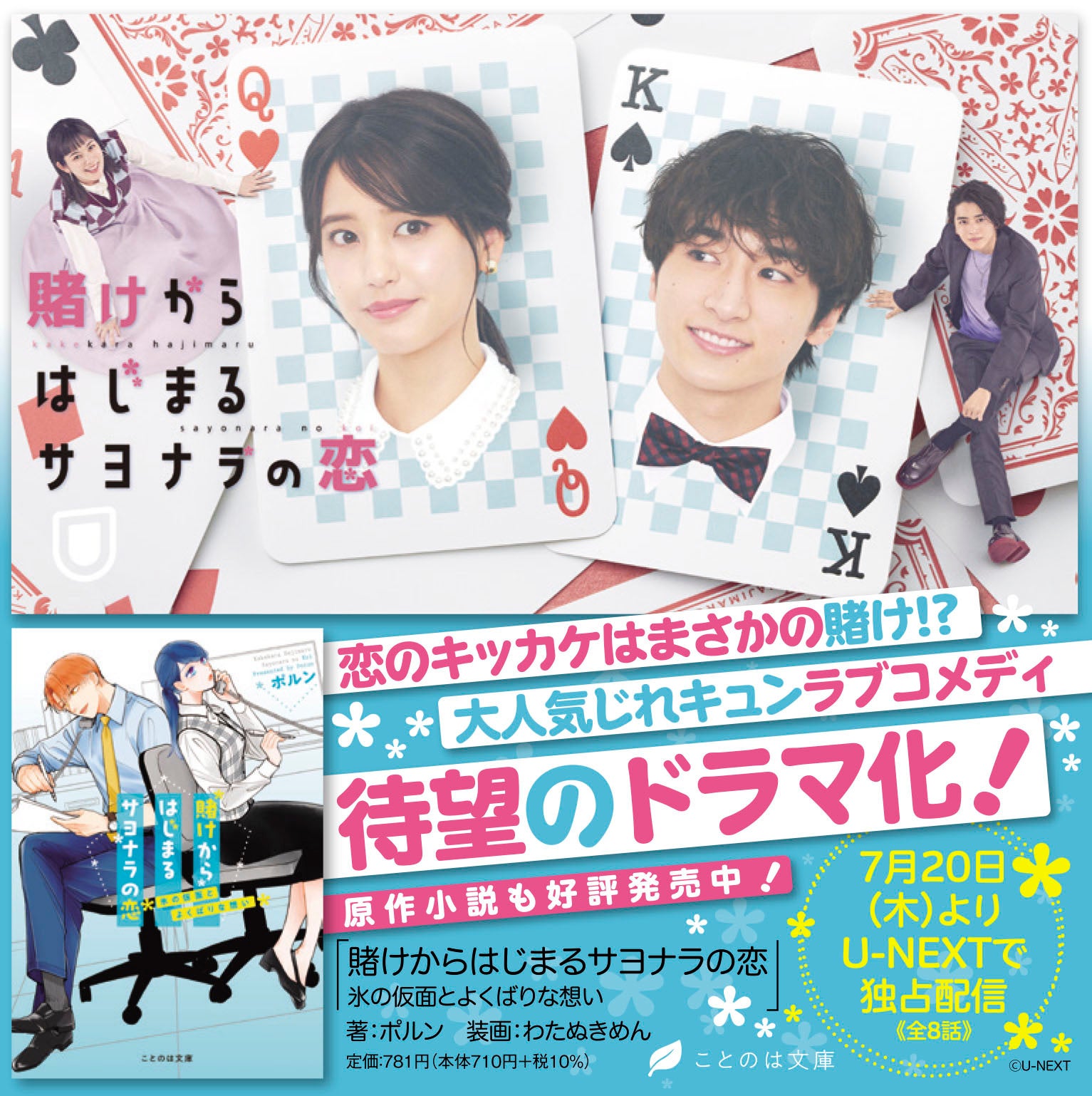 本日7月20日(木)18時からU-NEXTで独占配信開始となる実写ドラマ『賭けからはじまるサヨナラの恋』の原作小説。小説でしか読めない書き下ろし番外編も収録された、ファン必携の一冊となっております。