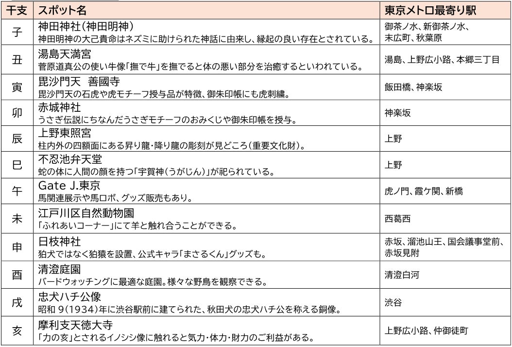 東京メトロでは、多くのお客様に楽しんでいただけるコラボレーション企画を実施し、東京の都市内観光「City Tourism」を通じて、沿線地域のにぎわいに貢献してまいります。ぜひ干支にゆかりのあるスポットを巡りながら新春のにぎわいを感じ、東京の魅力をお楽しみください。