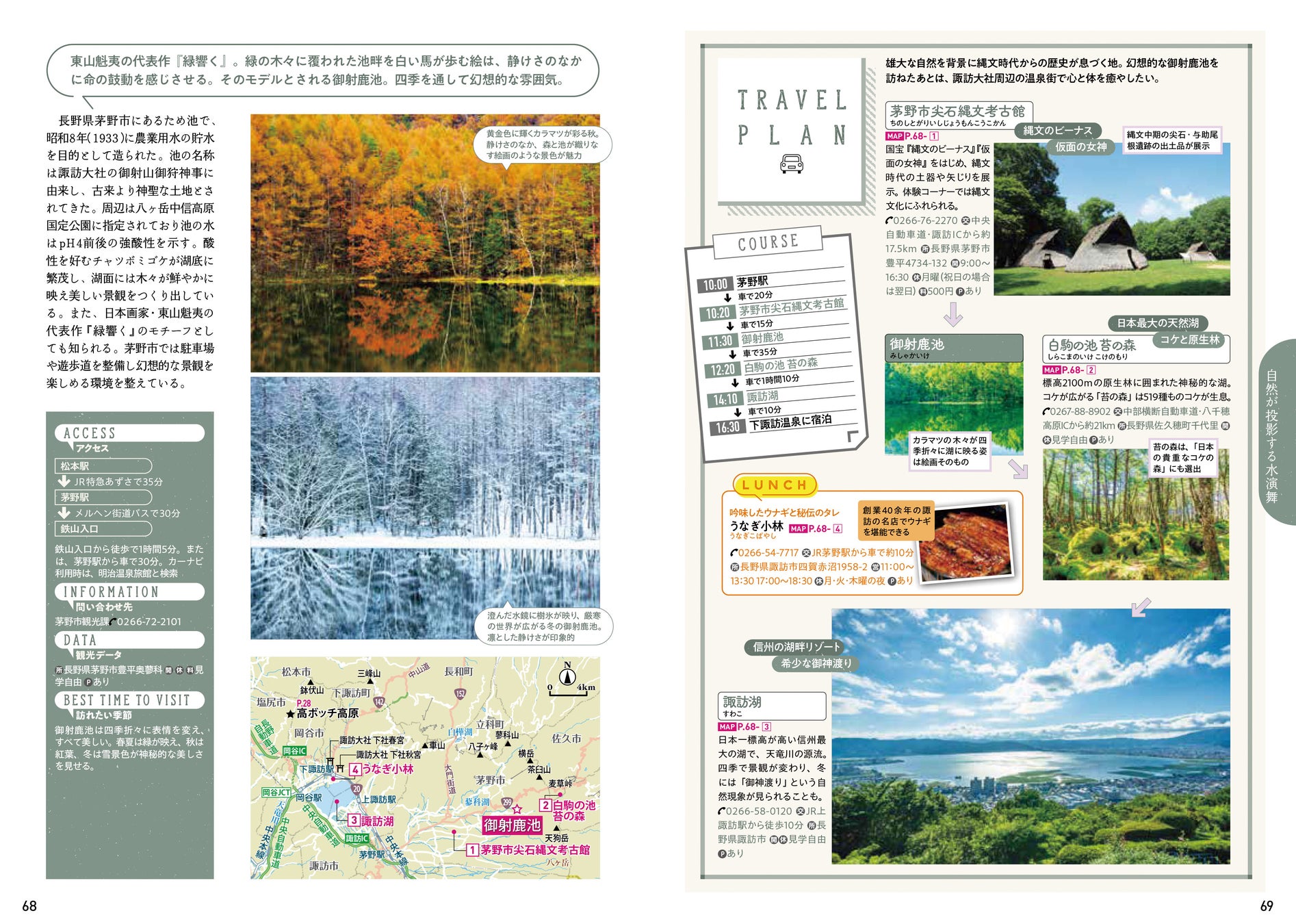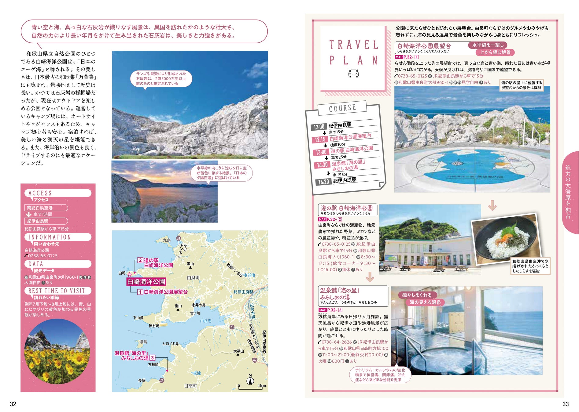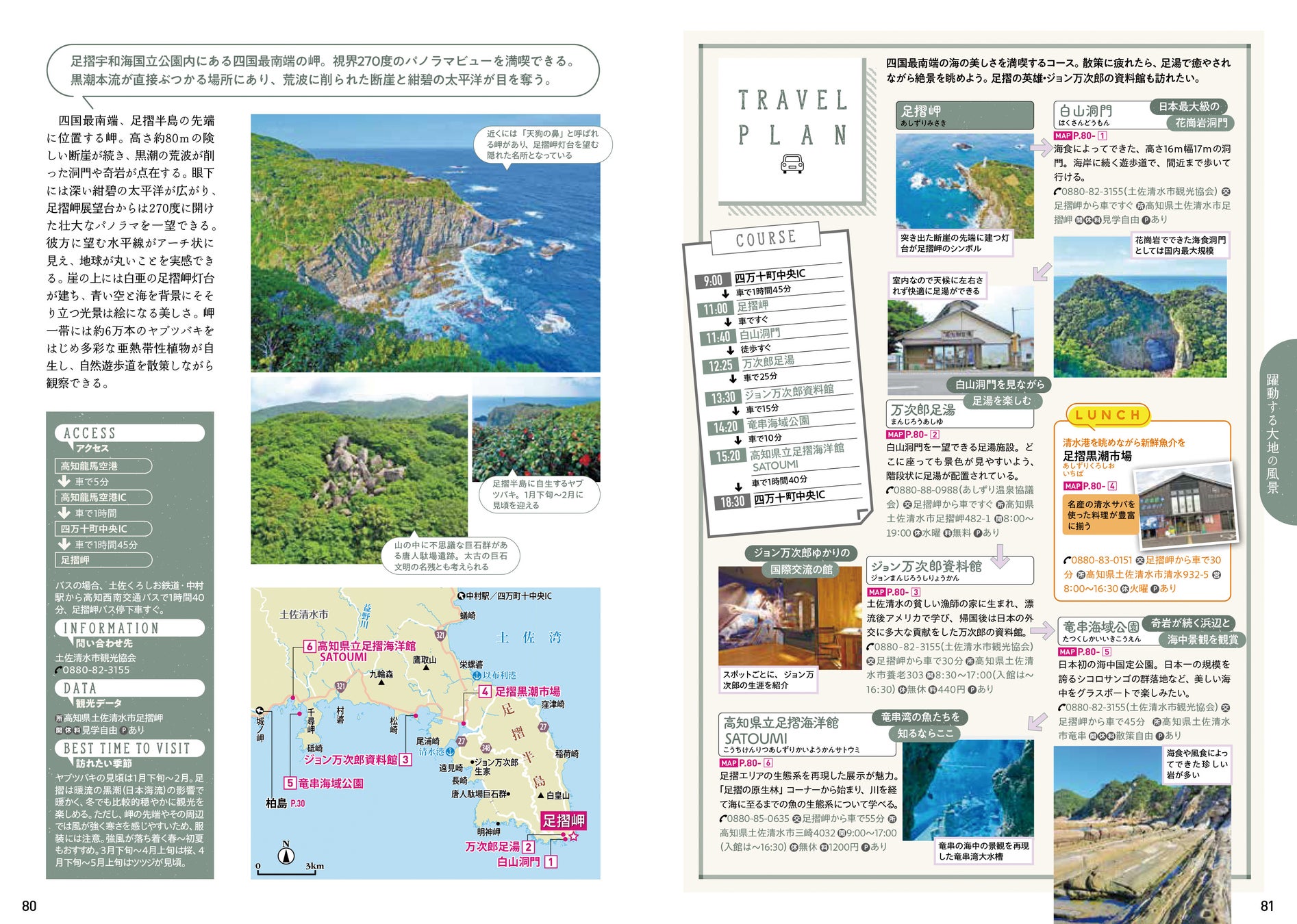 各スポットには最適な訪問時期を紹介しており、その地の豆知識、詳細な地図、周辺スポットも掲載。また、複数の絶景を一日で満喫できるオススメの旅行プランも数多く掲載し、写真・情報量どちらも充実しています。