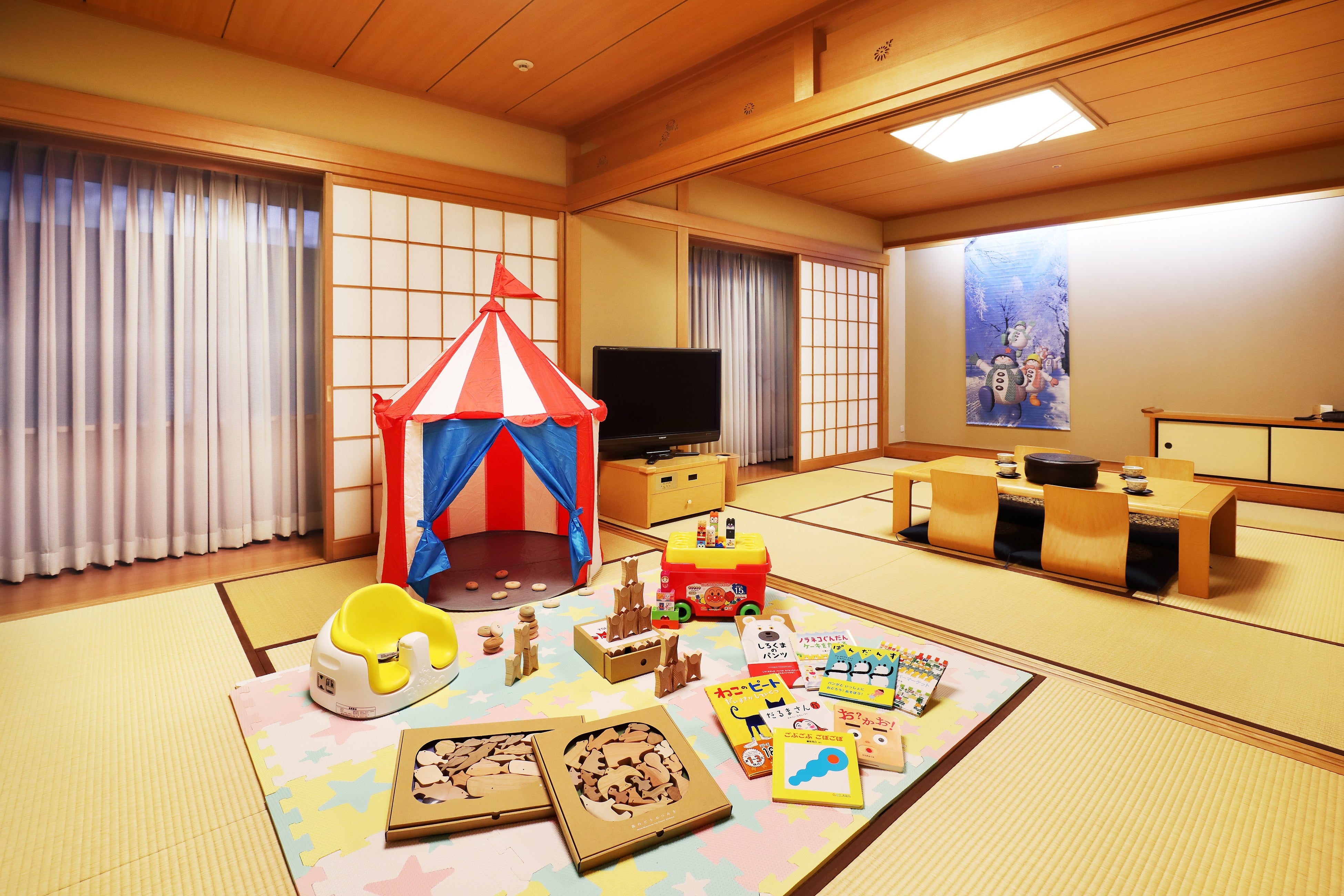 認定を記念して、「お食い初めお祝いプラン」、「お誕生日などのお祝いにオススメのプラン」、「お部屋でテイクアウトのお料理を楽しめるプラン」の3つの宿泊プランを販売します。認定のお部屋は6畳と8畳の二間を設けた75㎡の和室で、絵本や木のおもちゃ、お子様用テントもご用意。また、専用客室は客室フロア4階から10階のうち、4階に位置するため、お子様が走り回っても気兼ねなくお過ごしいただけます。