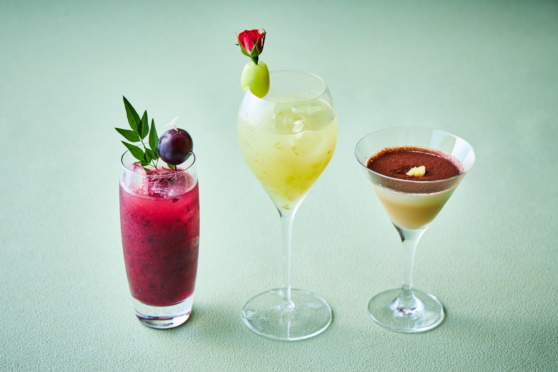秋の実りを感じていただけるよう、旬のシャインマスカットやナガノパープルを使用した瑞々しい上品な味わいのカクテルや、食後にぴったりなミルキーでソフトな口当たりのモンブランテイストを加えたクリーム系カクテルをご用意いたします。地上100mからの夜景をバックに、極上の一杯をご堪能ください。