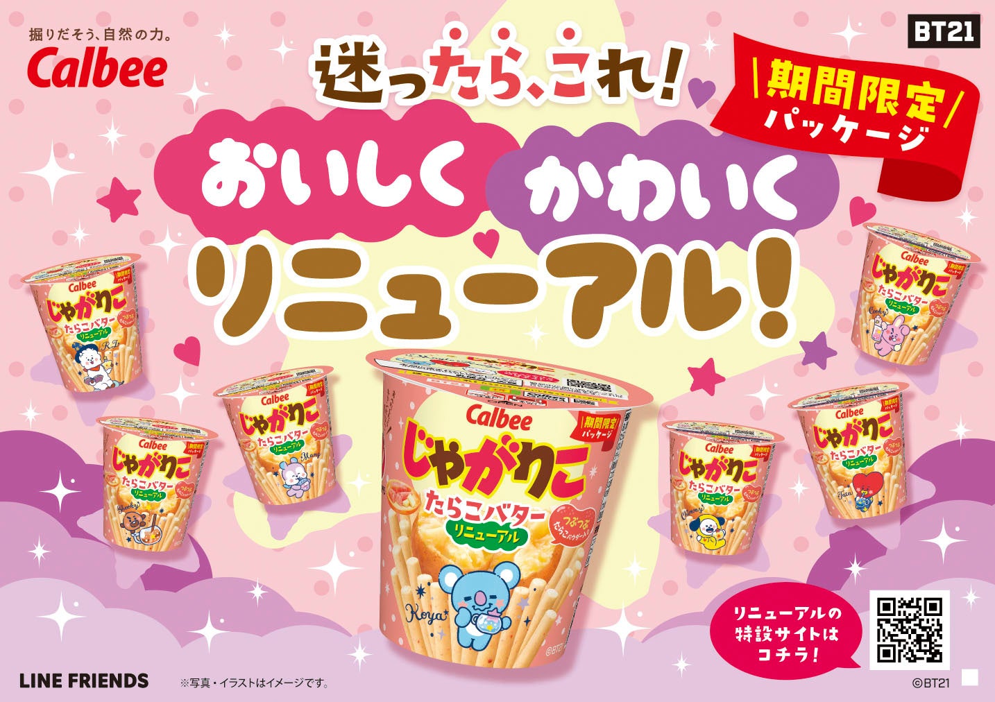 迷ったら、これ!おいしさも、かわいさもアップ!『じゃがりこ たらこバタ―』が7年ぶりにリニューアル 人気キャラクターブランド「BT21」とのタイアップパッケージで展開