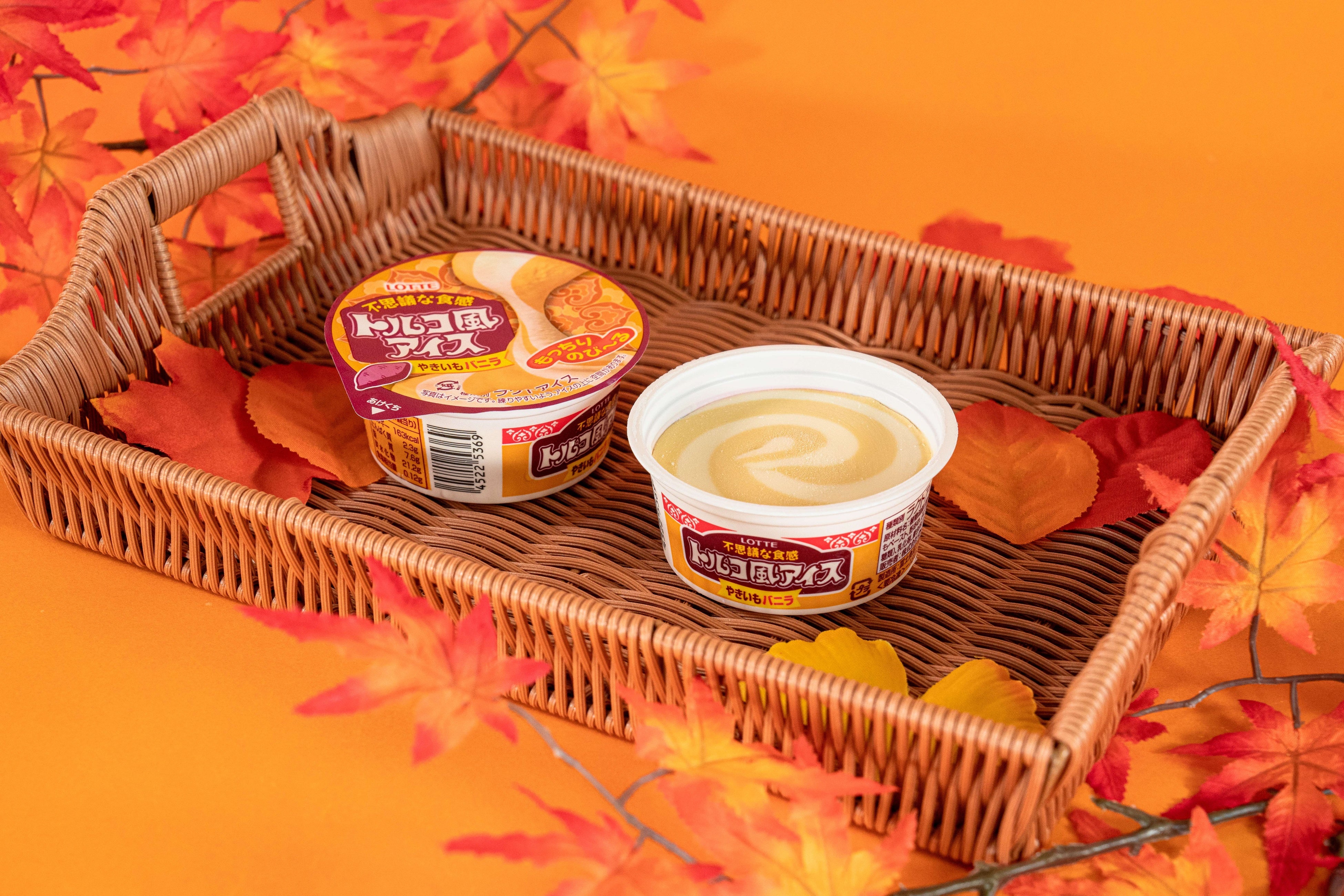 【内容】上段は北海道産の牛乳と生クリームを使用したコクのあるミルクアイス、下段は甘くて香ばしいやきいも風アイス、中間層にさつまいもあんを入れることで、食感・見た目の変化も楽しめるカップアイスです。やきいも風ソースを追加することで、昨年品よりもやきいも感がアップしました。